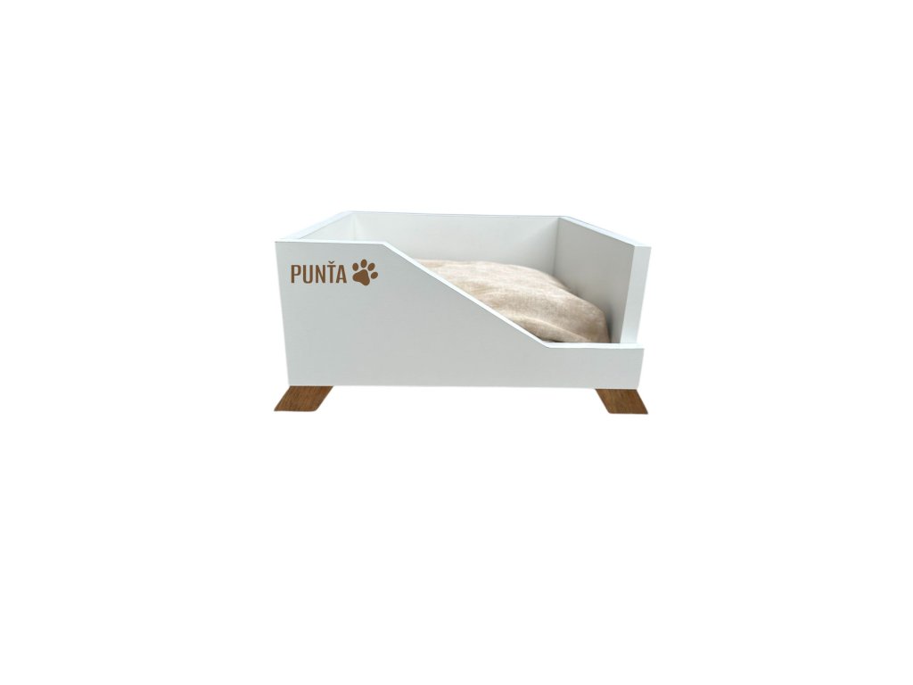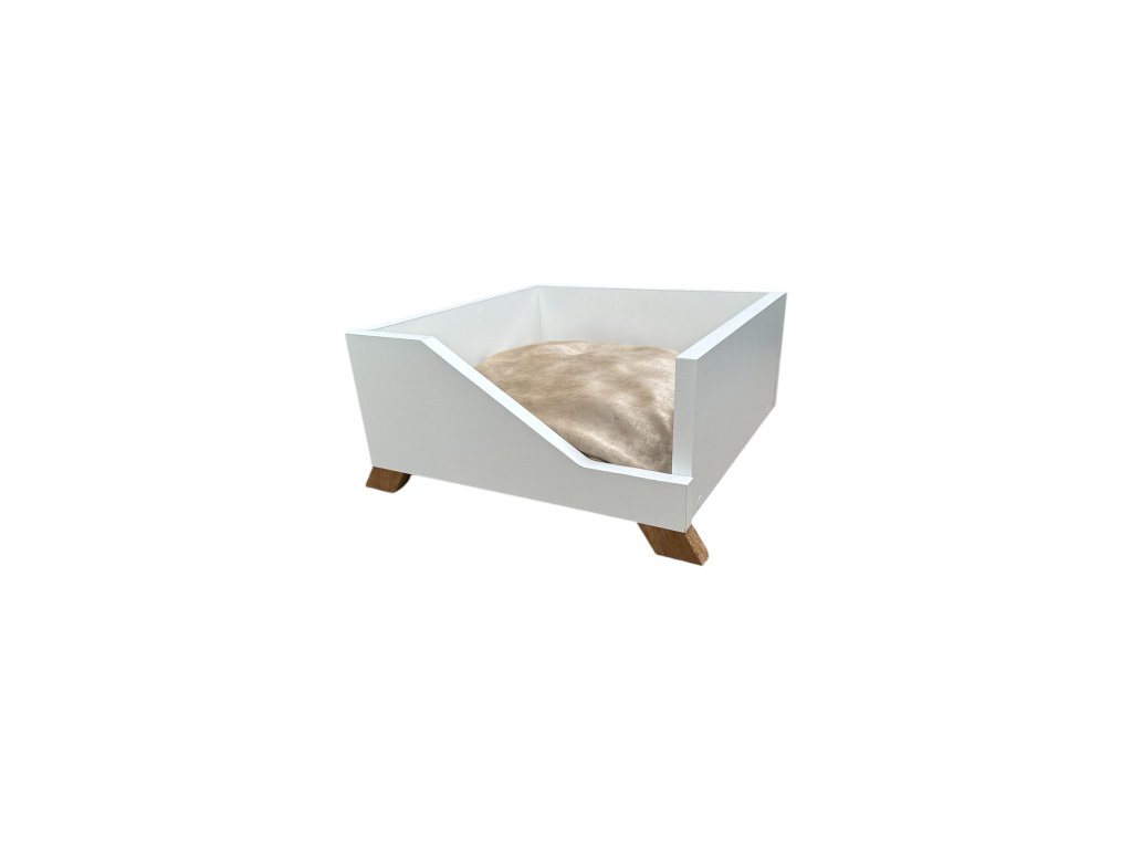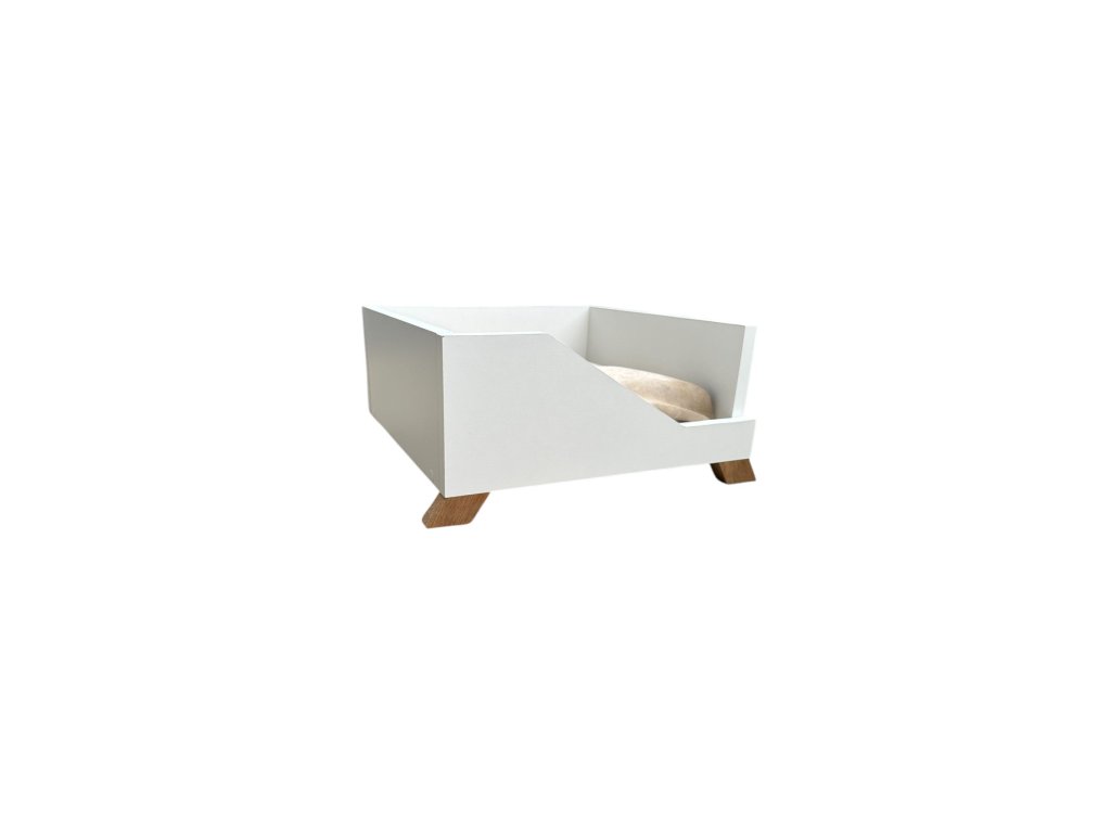 Hledáte ideální pelíšek, který bude nejen pohodlný, ale i designovým doplňkem vašeho domova? Tento čtvercový pelíšek o rozměrech 40×40×16 cm je perfektní volbou! Vyroben z kvalitních bílých nebo černých desek, stojí na 3 elegantních zkosených dubových nožkách, které dodávají stabilitu a styl.
