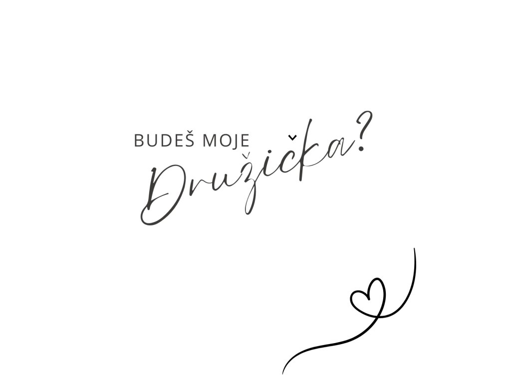 Dárková kartička "Budeš moje družička?" je jednoduchý, ale elegantní způsob, jak požádat svou nejlepší kamarádku, aby byla součástí vašeho velkého dne. S čistým designem a pouze textem je tato kartička elegantní a minimalistická, doplněná pouze o jemný symbol srdíčka v pravém dolním rohu.