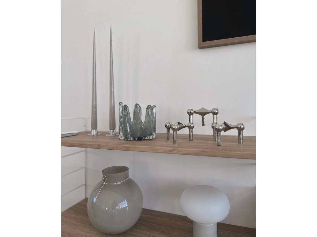Tento elegantní designový svícen byl navržen Erikem k výročí jeho a Esteřiny stříbrné svatby. Od té doby se stal jedním z nejprodávanějších doplňků této značky. Zkombinujte tyto svícny se svíčkami, které také naleznete v naší nabídce a to v mnoha barvách.