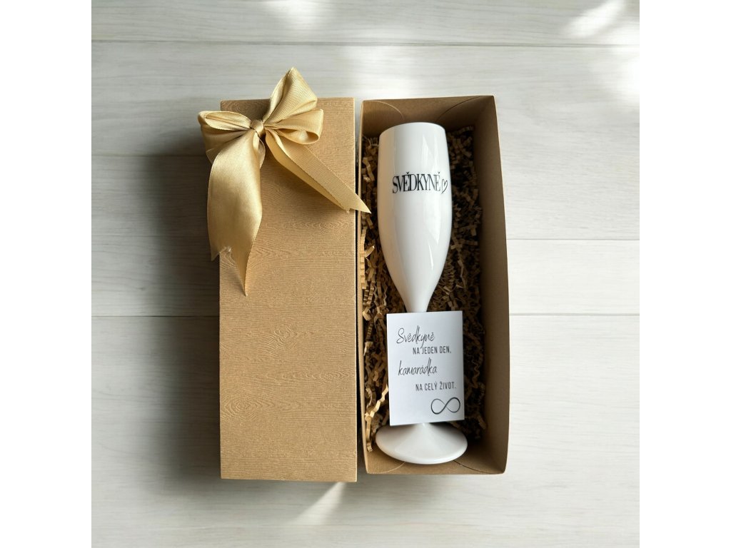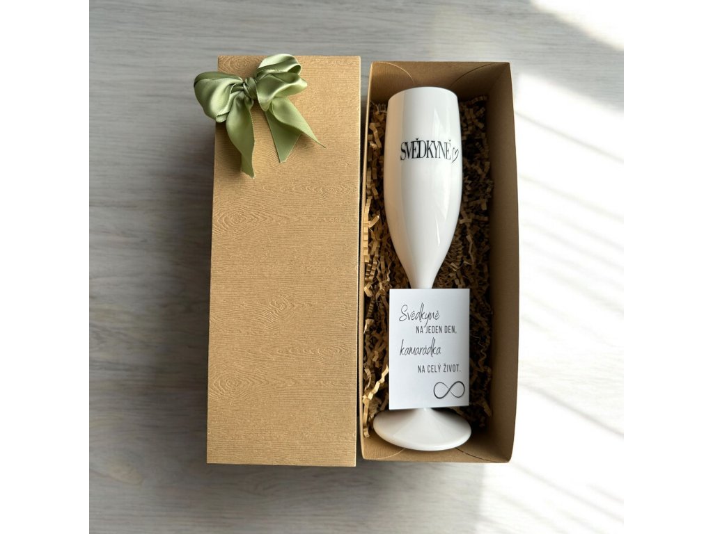 Svatební sklenička - SVĚDKYNĚ je ideální způsob, jak poděkovat své svědkyni za její pomoc a podporu během celého svatebního dne. Tato elegantní bílá sklenička s nápisem "Svědkyně" je skvélé připomenutí tohoto výjimečného dne.