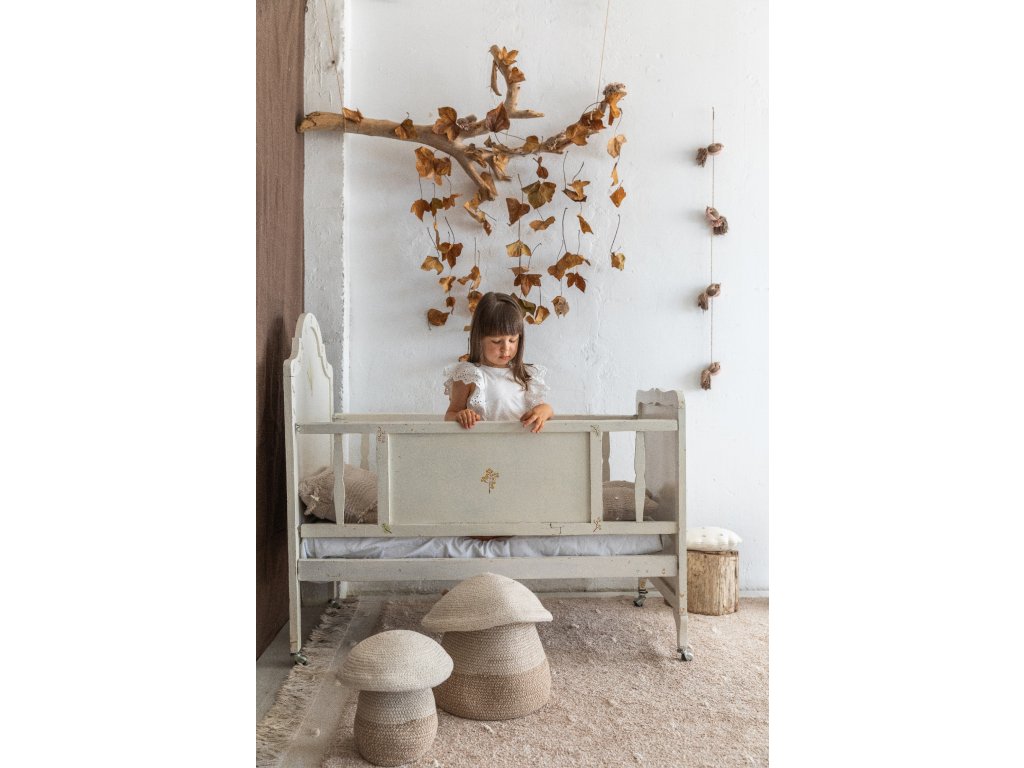 Kdo se chystá na houbaření? Tento víceúčelový koš z naší kolekce Cotton Woods přináší do dětského pokoje nádech lesa. Košík a miska v jednom, spodní polovina slouží k uskladnění, zakončená víkem. Děti si mohou ukládat své malé poklady nasbírané v lese nebo jen drobnosti a hračky, které mohou vysypat na víko. Samozřejmě neexistuje žádná Mama Mushroom bez své Baby Mushroom – menší verze košíku – pro doplnění sady.