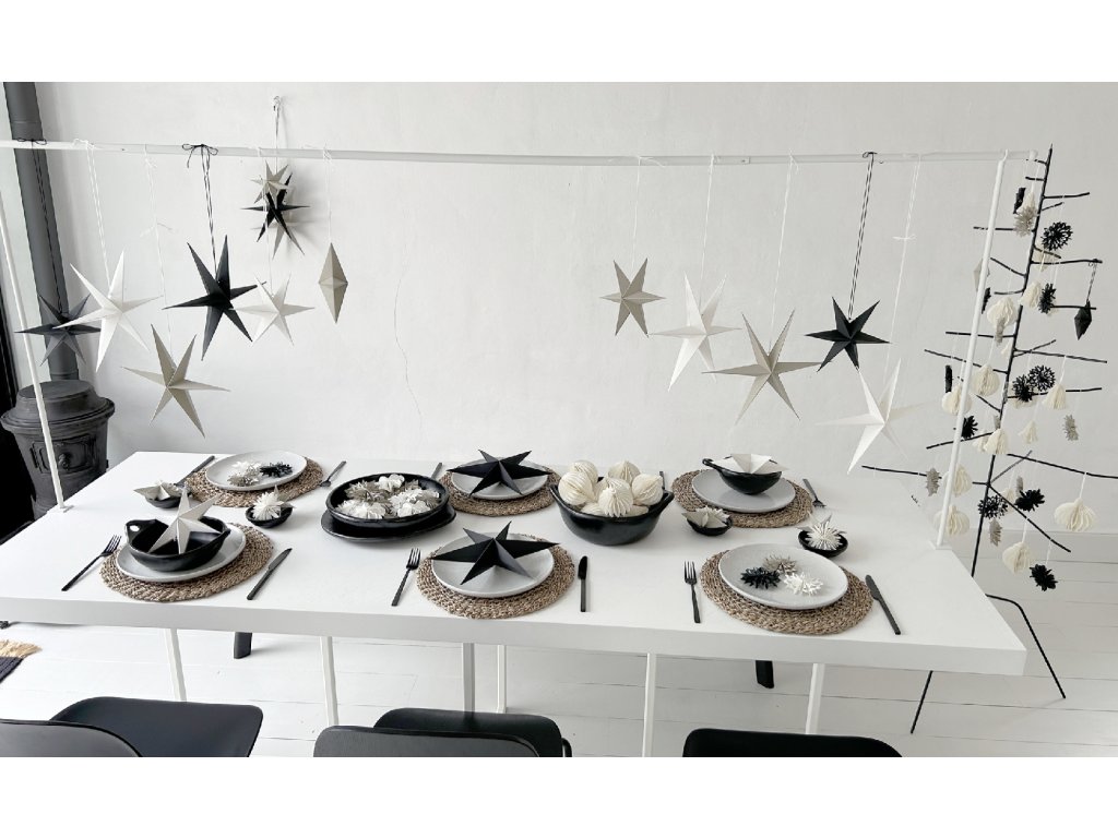 Šesticípá papírová hvězda Černá - 20 a 30cm (sada 2ks)